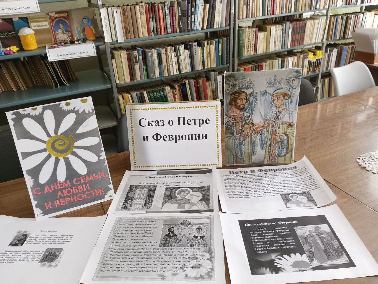 6 июля в библиотеке-филиале №5 прошла духовная беседа "Сказ о Петре и Февронии" ко Дню семьи, любви и верности. Библиотекарь Родина Н.Т. познакомила детей с существующей легендой о молодом князе Петре и бедной девушке Февронии, рассказала об истории создания праздника, с его символом – ромашкой, которая с древних времен была знаком любви. Из рассказа библиотекаря ребята открыли для себя, каким необычным образом познакомились друг с другом будущие святые, что они сделали друг для друга, как сумели сохранить любовь и верность до конца жизни и остались неразлучными после смерти.